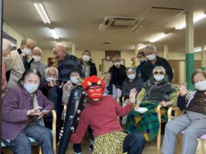 長者ヶ谷津温泉館 pickup豆撒き,鬼退治節分 豆撒きで鬼退治!! 2026年2月6日 2026年2月6日 節分祭で野ばらの赤鬼、金棒を持ち張り切って登場!! 皆さま、元気よく声を張り上げ、「鬼は外~、福は内~」と豆まき開始。 鬼を退治し、邪気を払いました。 最後は節分を祝して記念撮影しニッコリ。