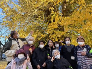 千波館 pickup外出レク 西連寺の大イチョウ♪ 2025年12月8日 2025年12月8日 ちょっと足を延ばして行方市の西連寺へ大イチョウを見に出掛けました! 黄色に色付いたイチョウのじゅうたんの上で記念写真😊 「とってもきれいねぇ。」「来年もまた来なくっちゃ。」😍 見事な大イチョウに皆さん大満足でした✨